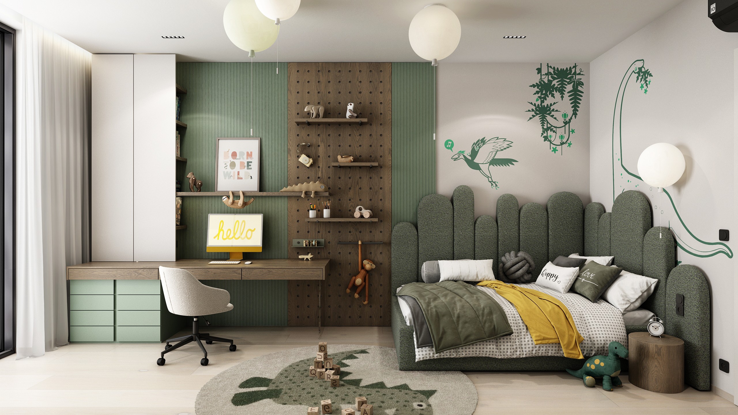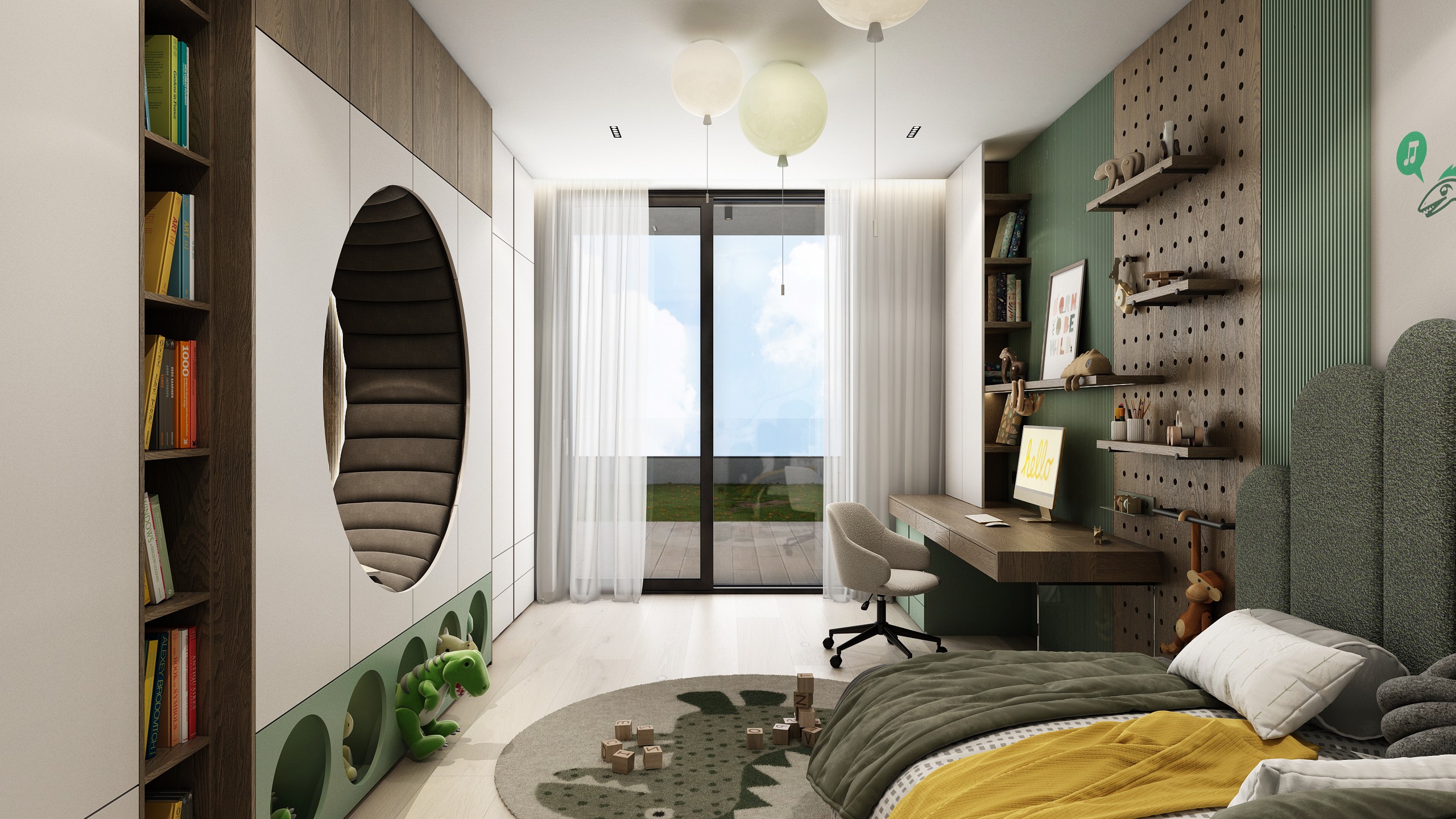 Chytrý interiér navržený pro růst, soustředění i fantazii. Kombinace přírodních tónů, hravých detailů a chytrých úložných prvků vytváří bezpečné a inspirativní místo, kde se potkává radost ze hry s klidným odpočinkem.